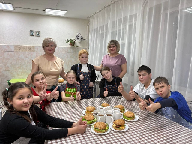 Детей постарше и наших подростков ждали занятия по направлениям "Здоровая семья" и "Домоводство". Подростков ожидал увлекательный турнир по настольному теннису, где юные спортсмены встретились за теннисным столом, чтобы выяснить, кто самый быстрый и точный, а дети помладше вместе с родителями стали непосредственными участниками веселой эстафеты. Эстафета стала отличным поводом для родителей вернуться в детство, а для детей - почувствовать надежное плечо рядом. Спортивный аппетит разыгрался не на шутку, поэтому мы плавно переместились на кулинарный мастер - класс направления "Домоводство". Тема занятия - "Гамбургер для папы". Под руководством педагогов дети учились: -правильно мыть руки; -аккуратно обращаться с ножом; -выкладывать слои(соус, салат, котлета, сыр, помидор); -сервировать готовый бургер с зеленью. Каждый участник собрал свой авторский гамбургер. Аромат стоял на все учреждение. Но главное - дети уносили домой не просто бутерброд, а настоящий кулинарный шедевр и гордость: "Я сам сделал ужин для папы!" Очередные встречи семейного клуба показали, как по - разному можно проводить время в кругу семьи: активно соревнуясь или спокойно готовя на кухне. И в том, и в другом случае главное - быть вместе.